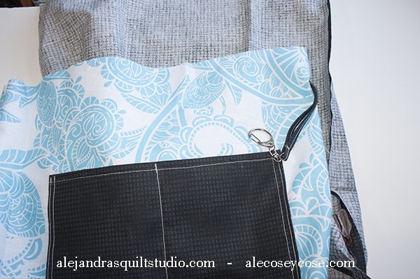 10. Turn out the bag for the inside, you can see here how I did the inside pocket with no zipper. and you can also see in this picture I like to put a key’s ring to hold my keys and this way my keys don’t get lost in my bags.