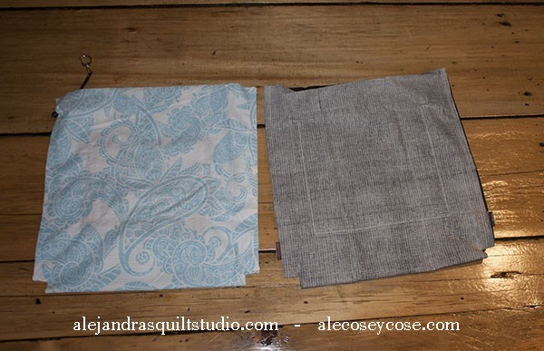3. The piece of fabric you’ll use for the inside of the backpack should look like this after you sew the two pockets on it, one with zipper and one with no zipper.
